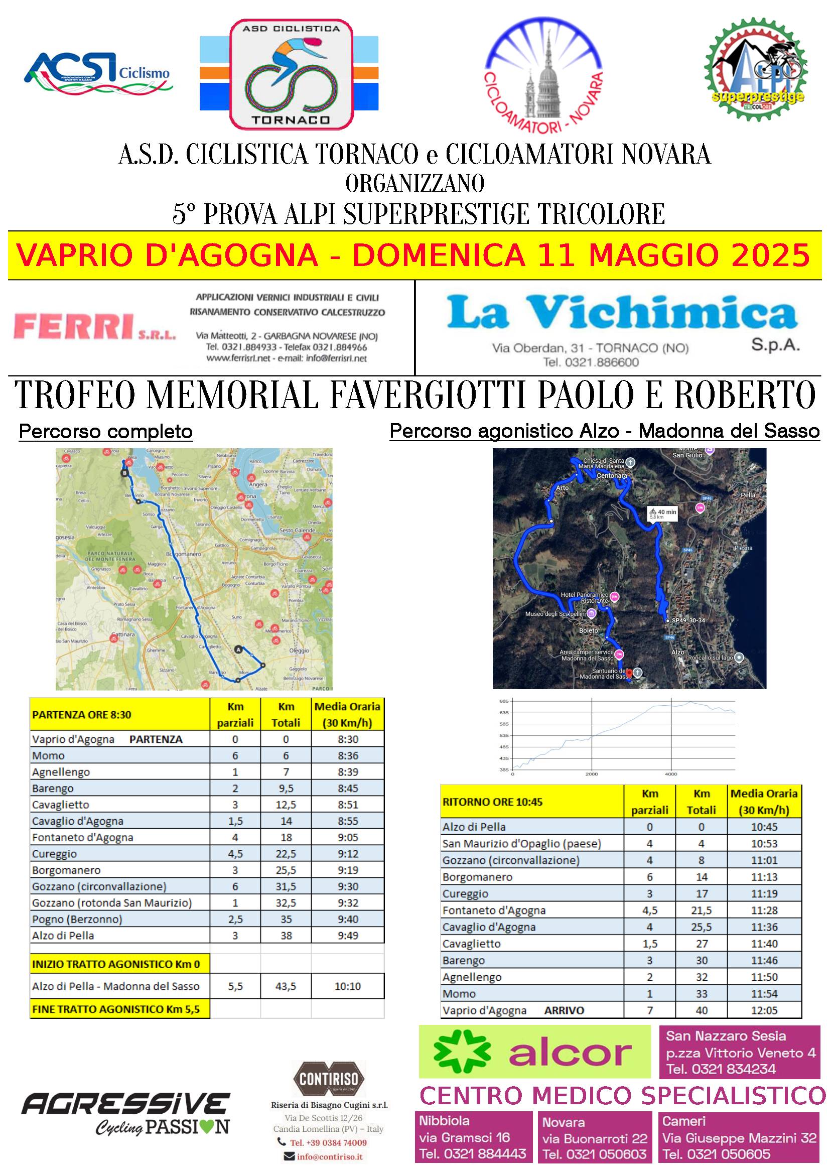 A.S.D. Cicloturistica Tornaco organizza DOMENICA 11 Maggio 2025 una Manifestazione sportiva cicloturistica con tratto competitivo denominata_ Memorial Paolo e Roberto Favergiotti che interesserà anche il territorio del Comune di Madonna del Sasso.